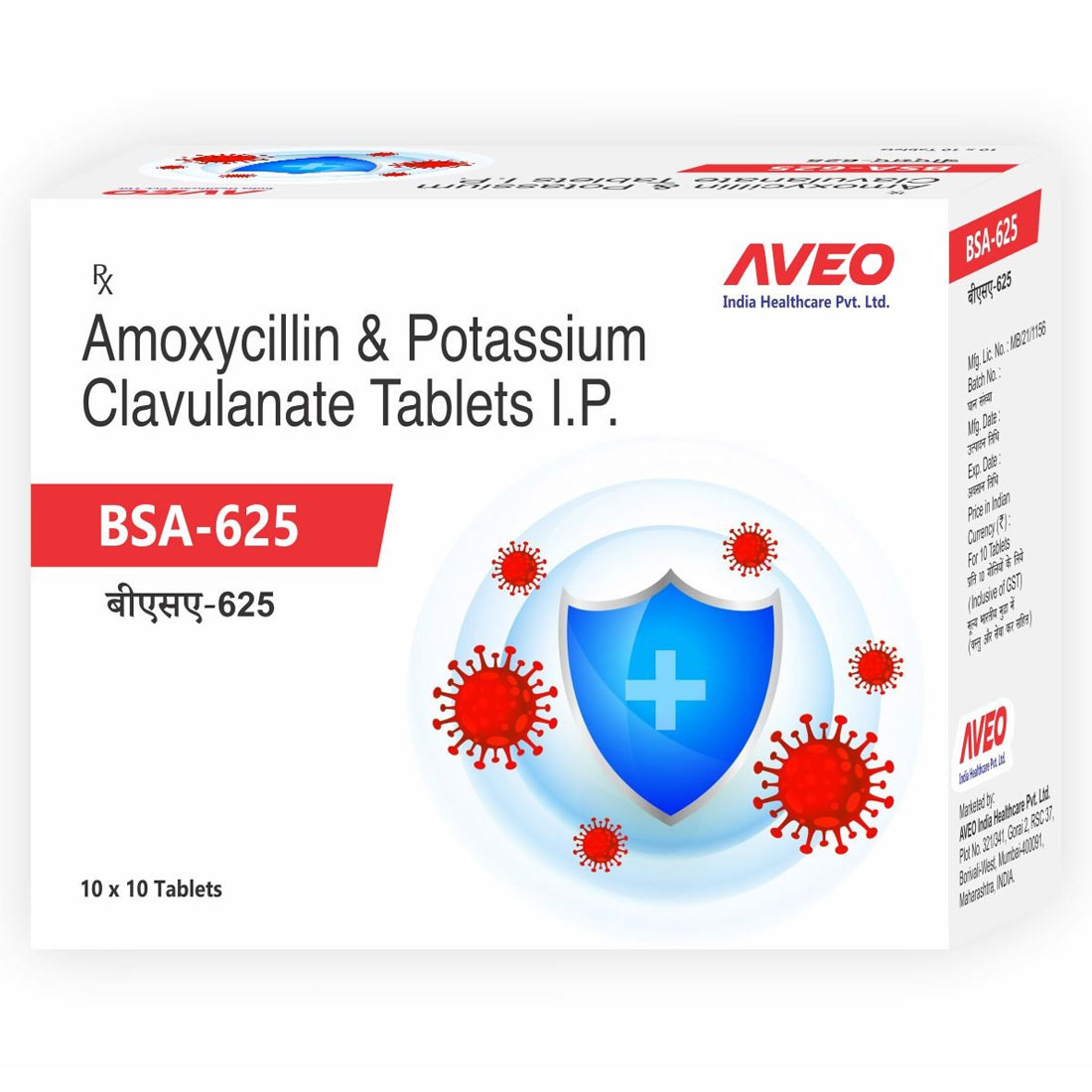 BSA-625 is a broad-spectrum antibiotic combination containing Amoxycillin 500 mg and Potassium Clavulanate 125 mg, used for the effective treatment of a wide range of bacterial infections. This combination works by killing bacteria and preventing them from developing resistance.